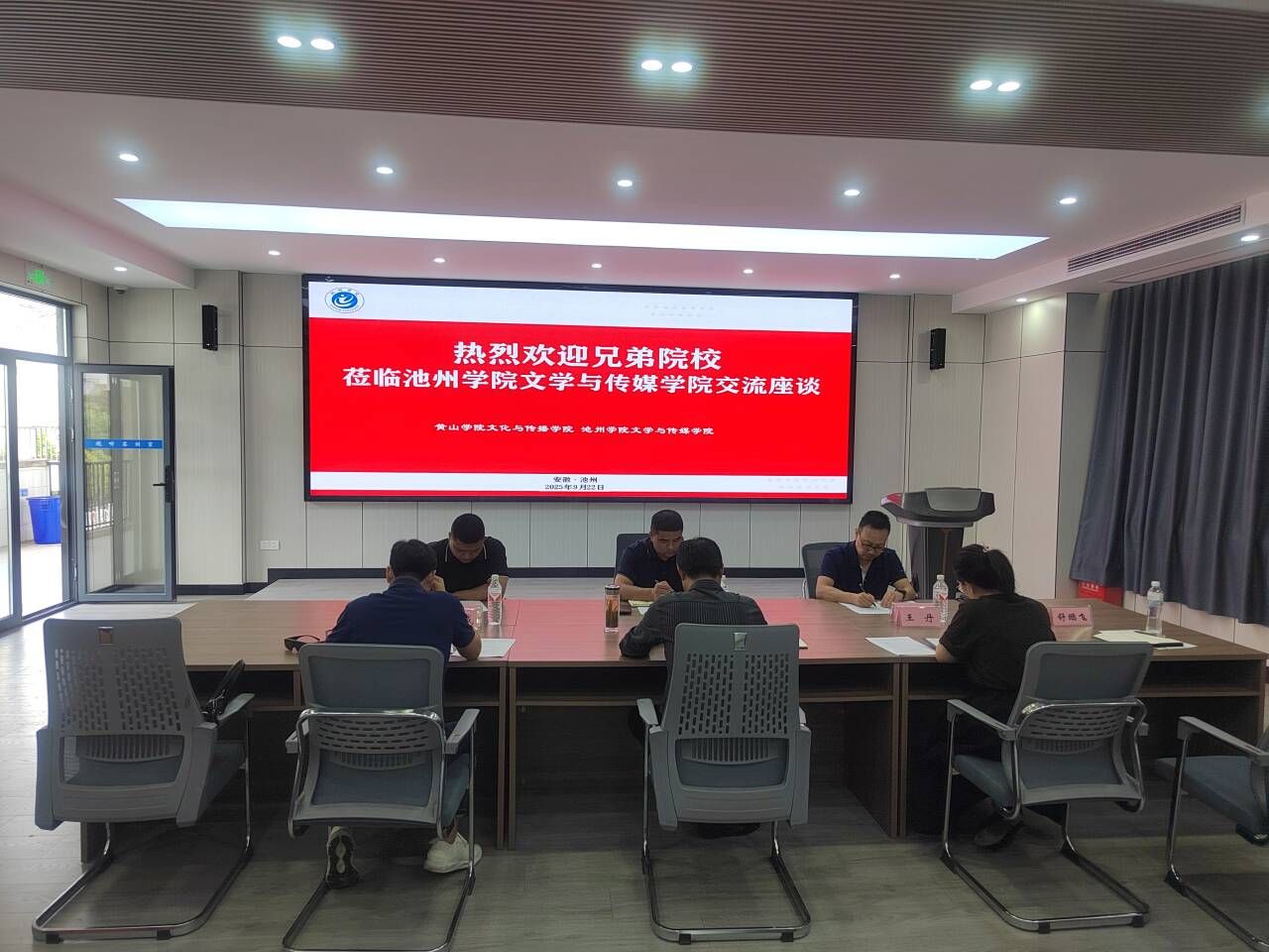 9月22日下午,黄山学院文化与传播学院副院长刘罗玉一行3人来文学与传媒学院调研交流,就推进传媒类专业建设及应用型人才培养展开座谈。文学与传媒学院副院长高祥华主持座谈,广播电视编导系主任刘威、网络与新媒体系主任王丹,文学与传媒学院实验实训中心主任舒鹏飞参加座谈。