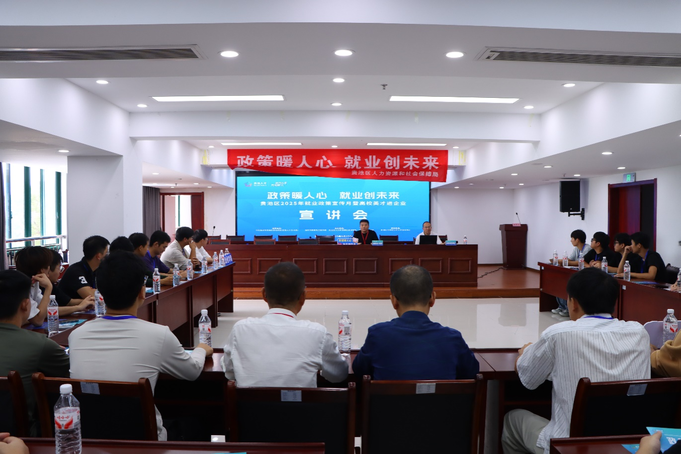 集中宣讲环节,区人社部门详细解读高校毕业生在池就业创业政策,涵盖补贴、扶持与人才引进等内容,为学生留池发展提供清晰指引。活动还介绍了第二届“昭才杯”双创挑战赛的赛道设置、奖项机制及成果衔接方式,进一步激发参赛热情。
