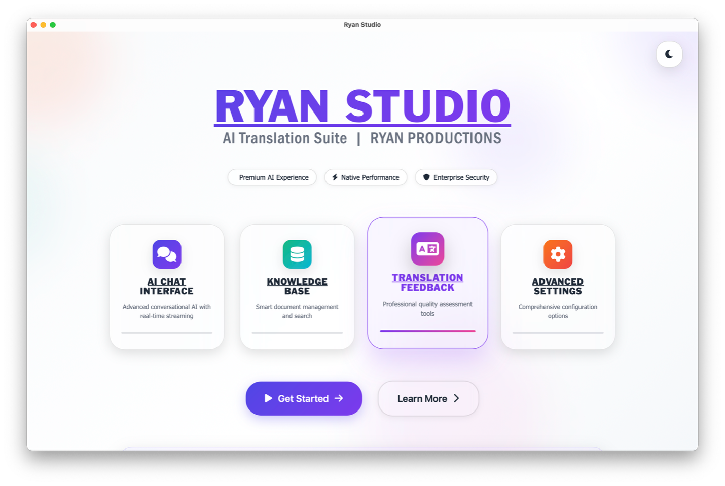 “文译通”平台由一个迭代式核心翻译模块和两个辅助模块组成。核心翻译模块引入“提交-AI评估-修改-再提交”动态循环,并生成直观的学生个人成长曲线,辅助的“AI Chat”模块提供可自由选择多种大语言模型的通用对话功能,“课程知识库”模块将教学资源从静态文件转变为一个可供学生用自然语言交互的“课程智慧大脑”。三者形成了一个完整的教学支持生态系统。同时,软件界面设计精美,提供了丰富的自定义设置选项,确保专业、流畅的用户体验。