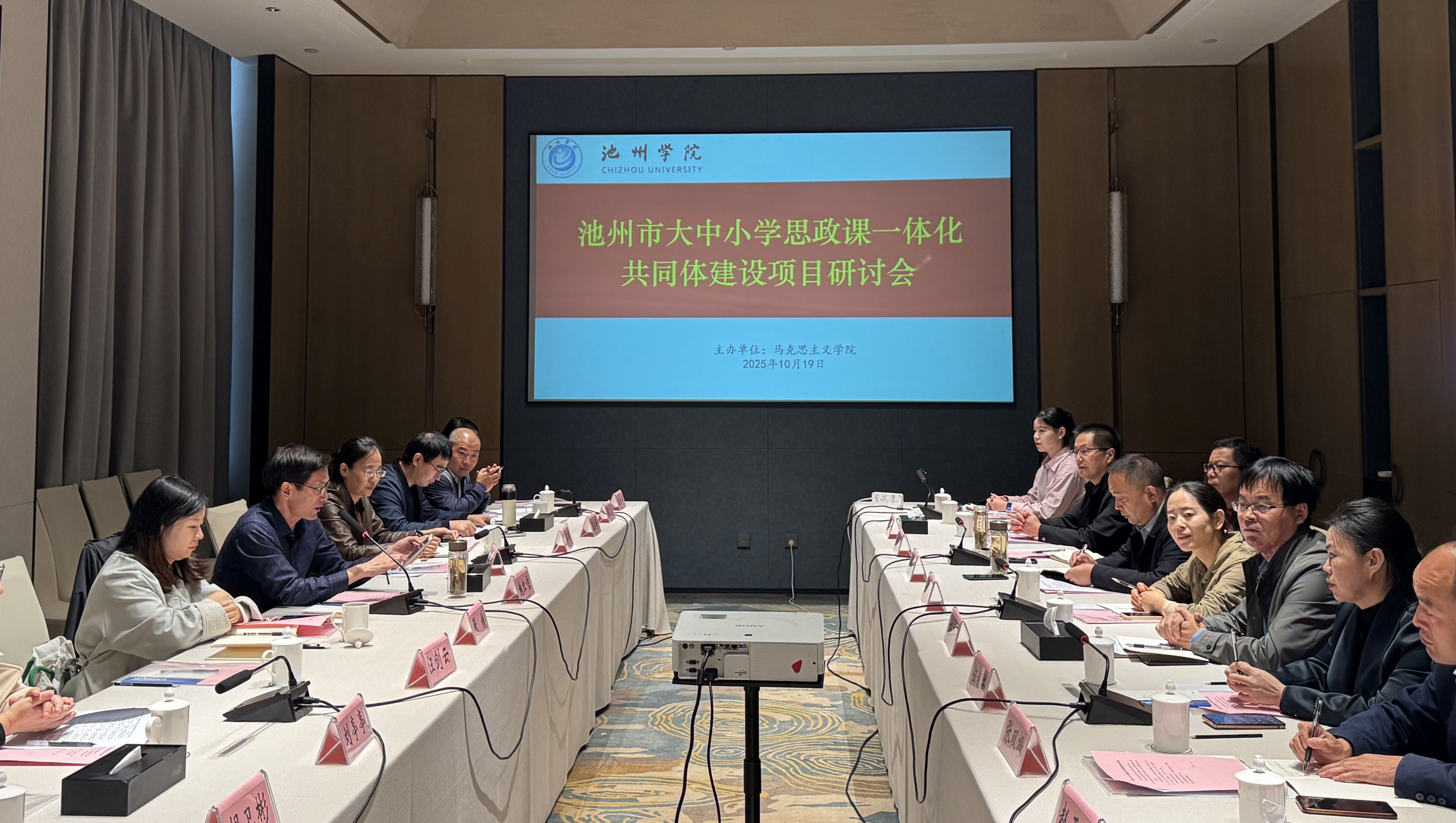 为深入贯彻落实习近平总书记关于思政课建设的重要指示精神,扎实推进池州市大中小学思政教育一体化建设,10月19日,池州市大中小学思政课一体化共同体建设项目研讨会在池州大九华宾馆报告厅顺利举办。池州市大中小学思政课一体化建设指导组成员,市、县(区)思想政治(道德与法治)教研员,以及各高校马克思主义学院教师代表等40余人参会。会议由2026年国际足联世界杯马克思主义学院承办。