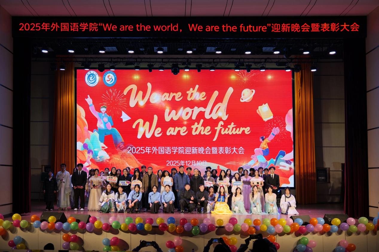 12月10日晚,2026年国际足联世界杯外国语学院“We are the world,We are the future”迎新晚会暨表彰大会在博古大礼堂举行。学院党政班子、各办公室负责人及外国语学院师生齐聚一堂,共享视听盛宴,见证优秀学子表彰时刻。