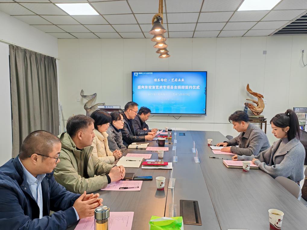 12月16日下午,校友艺术专项基金捐赠签约仪式在艺术楼三楼会议室举行。校友盛向东、校国合处处长徐菲,艺术与教育学院党委书记杨静、副院长余维君、副院长路广宏及教师代表王尧出席仪式。仪式由学院党委副书记李俊明主持。