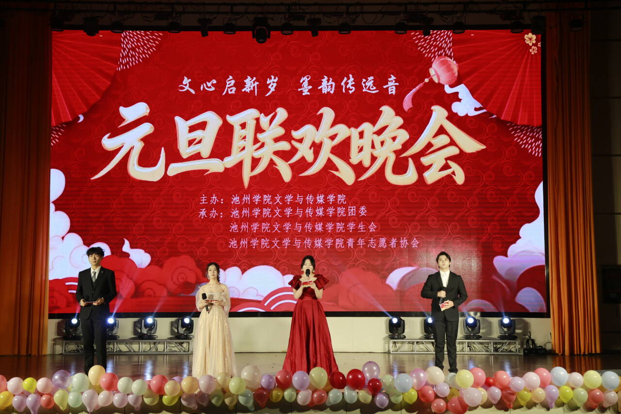 12月24日晚,文学与传媒学院在博古礼堂成功举办“文心启新岁,墨韵传远音”元旦晚会。学院党委书记许思友,党委副书记朱德权,副院长高祥华,副院长张银飞以及师生代表出席晚会。