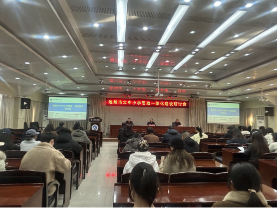1月9日,教务处联合池州市教育和体育局教学研究室在学校办公南二楼会议室举办主题为“协同·贯通·融合:深化大中小课程思政一体化建设,培育德智体美劳全面发展的时代新人”的池州市大中小思政一体化建设研讨会,池州市教育和体育局教学研究室主任詹春慧出席会议并致辞,学校省级大中小课程思政一体化项目负责人和中小学负责人及核心成员,马克思主义学院部分师生50余人参会,教务处处长周恺主持会议。