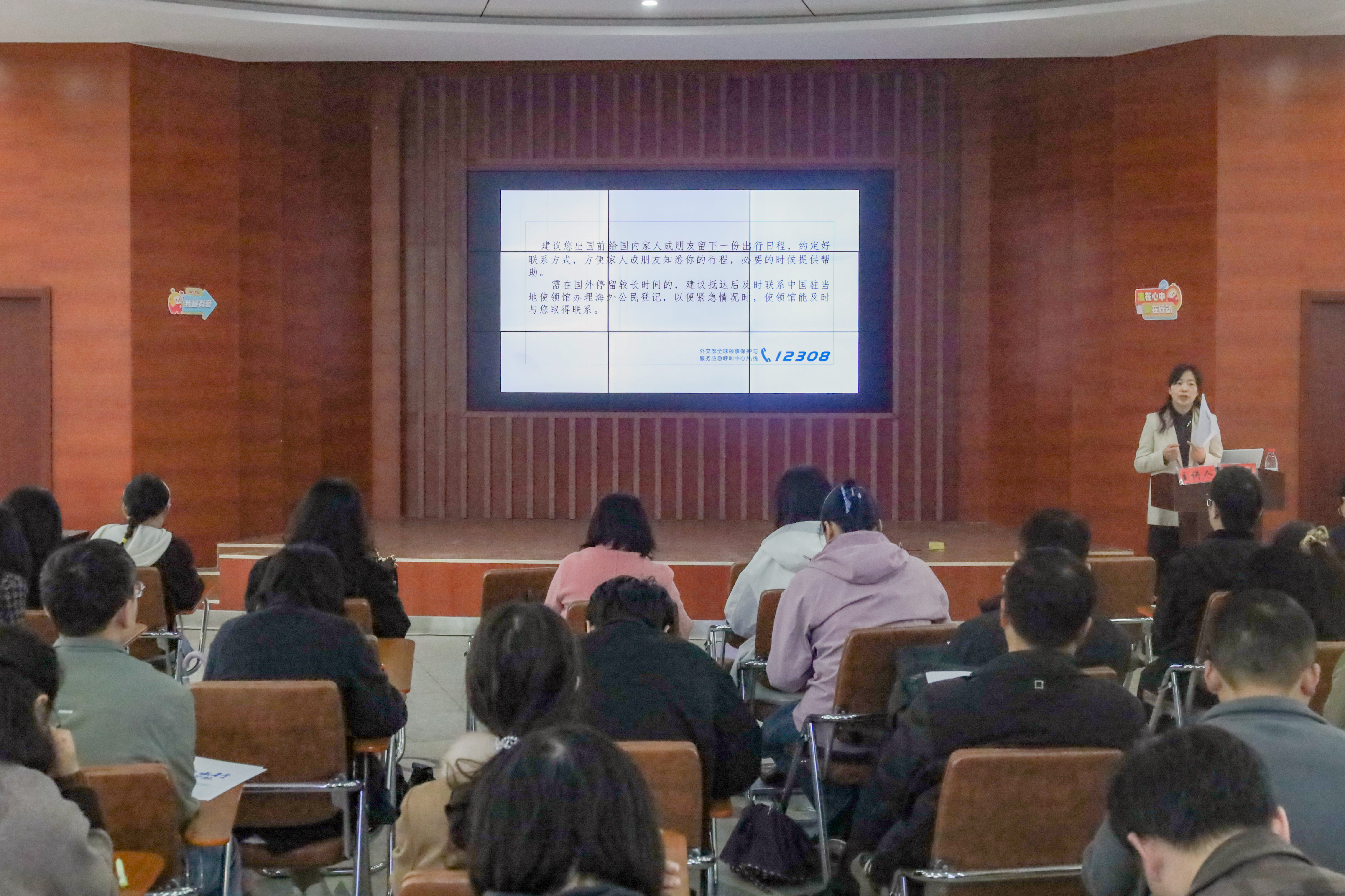 培训会围绕国家安全、领事保护、涉外礼仪三个主题展开,结合当前国际形势,就出境人员的国家安全意识做了重点提示,对领事保护及境外紧急情况处置流程做了详细解读,结合典型案例深入剖析了常见涉外风险的防范与应对措施。培训会还围绕国际商务与学术交流礼仪规范、跨文化交往禁忌及接待拜访实务展开了演示与交流。