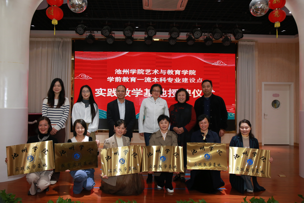 为贯彻落实党的二十大精神,加快建设高质量幼教体系,建立合作共赢的“三位一体”协同培养机制,进一步提升高素质应用型人才培养质量,11月4日下午,艺术与教育学院与青阳县直属机关幼儿园、东至县直属机关幼儿园、石台县示范幼儿园等六所幼儿园在贵池区启蒙树幼儿园举行了实践教学基地签约暨授牌仪式。池州市教体局机关工会主席武慧、青阳县教体局幼教教研员徐永丽,副院长曾晓红、实验实训中心主任余维君、学前教研室主任谭甲文、学前教育专业老师张俊、付晨晨等参加了此次仪式。