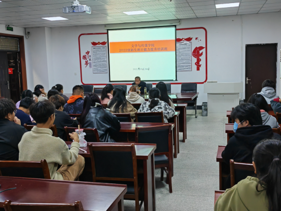 为学习宣传贯彻党的二十大精神,深入落实习近平总书记关于青年工作的重要讲话精神,11月17日下午,文学与传媒学院在博物楼第一会议室举办了2022级新生学生干部能力提升培训班开班式。学院党委书记许思友主持开班式并作首场专题报告。
