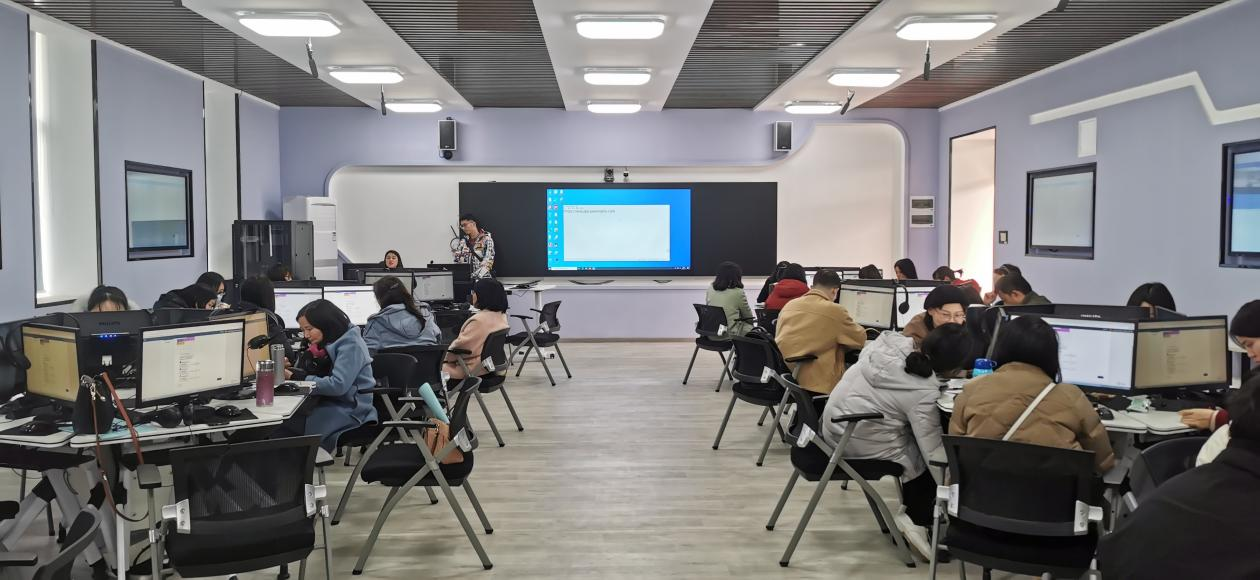 为进一步增强教师数字意识,提升技术赋能,引领教育教学改革,3月1日下午,外国语学院在博采北502研讨型智慧教室、503虚拟情景实训室分别举办数字化教学专题培训。培训会由实验实训中心陈新苗老师主持,邀请技术工程师担任主讲,全体教师参加培训。