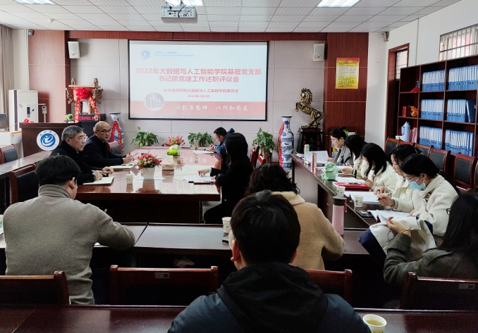 3月3日,大数据与人工智能学院举行2022年度基层党支部书记抓党建工作述职评议会,学院党政领导班子、科级干部、各党支部书记及全体支委、专职组织员、专职辅导员、教师代表、学生代表参加,院党委书记宛明高主持会议。