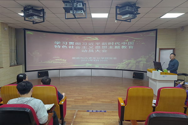 4月20日下午,旅游与历史文化学院在博雅南404召开学习贯彻习近平新时代中国特色社会主义思想主题教育动员大会。院党委委员、副院长张赛到会指导。
