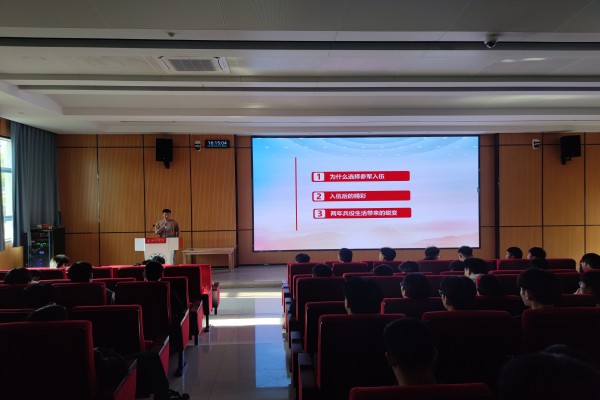 为深入开展学习贯彻习近平新时代中国特色社会主义思想主题教育,弘扬爱国主义精神,扎实做好学院征兵入伍工作,4月26日下午,机电工程学院在公共教学楼西报告厅开展大学生爱国主义教育暨征兵入伍宣传活动。机电工程学院党委副书记余钰琪、学生工作办公室主任汪义贵参加活动。活动由汪义贵主持。