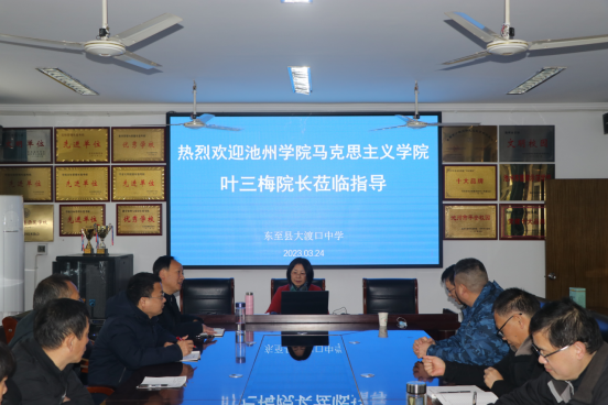 3月24日,教务处邀请马克思主义学院院长叶三梅作为专家赴东至县大渡口中学开展托管帮扶专项活动,东至县大渡口中学副校长章恒森主持辅导报告会,大渡口中学全体思政课教师参加会议。
