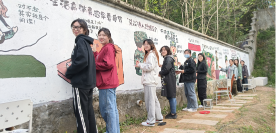 活动初期,艺术与教育学院党委书记杨静带队亲赴现场考察,科学制定施工方案,并特别提出要在确保工期的情况下严把质量关,把工作做细做实。具体施工过程中,艺术与教育学院组织4名指导教师、26名学生党员、21名入党积极分子共同参与,历经五个整天的攻坚克难,高质高量的完成了长达74米44幅作品的墙体文化绘制任务,以实际行动学习宣传贯彻党的二十大精神。
