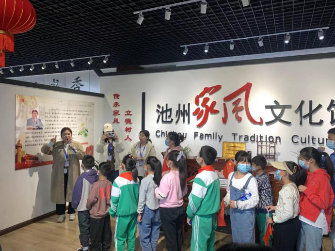 时值蒹葭苍苍,白露为霜的霜降时节,学生第五支部的志愿者早早就等候在学校门口,迎接孩子们的到来。活动第一站安排在校家风文化馆。在讲解员的带领下,孩子们参观了池州周氏家族的家风文化,并了解到周氏家族在优良家风的影响下,家中人才辈出,各行各业皆出现过出类拔萃的人物。在讲解的过程中,有些小朋友对周氏家族中的人物所取得的成就感到震撼,在讲解员和志愿者的引导下,她们感受到一个良好的氛围对人成长的重要性,受到了讲道德、守规矩、重家风的传统教育。