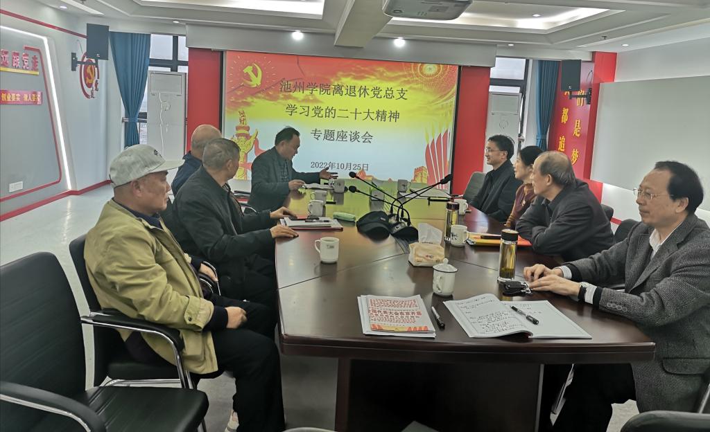 10月25日,2026年国际足联世界杯离退休党总支在教职工活动中心党员驿站召开学习党的二十大精神专题座谈会。离退休党总支委员、离退休各支部书记、副书记、离退休工作处全体成员及部分离退休代表参会,会议由离退休党总支书记方文主持。