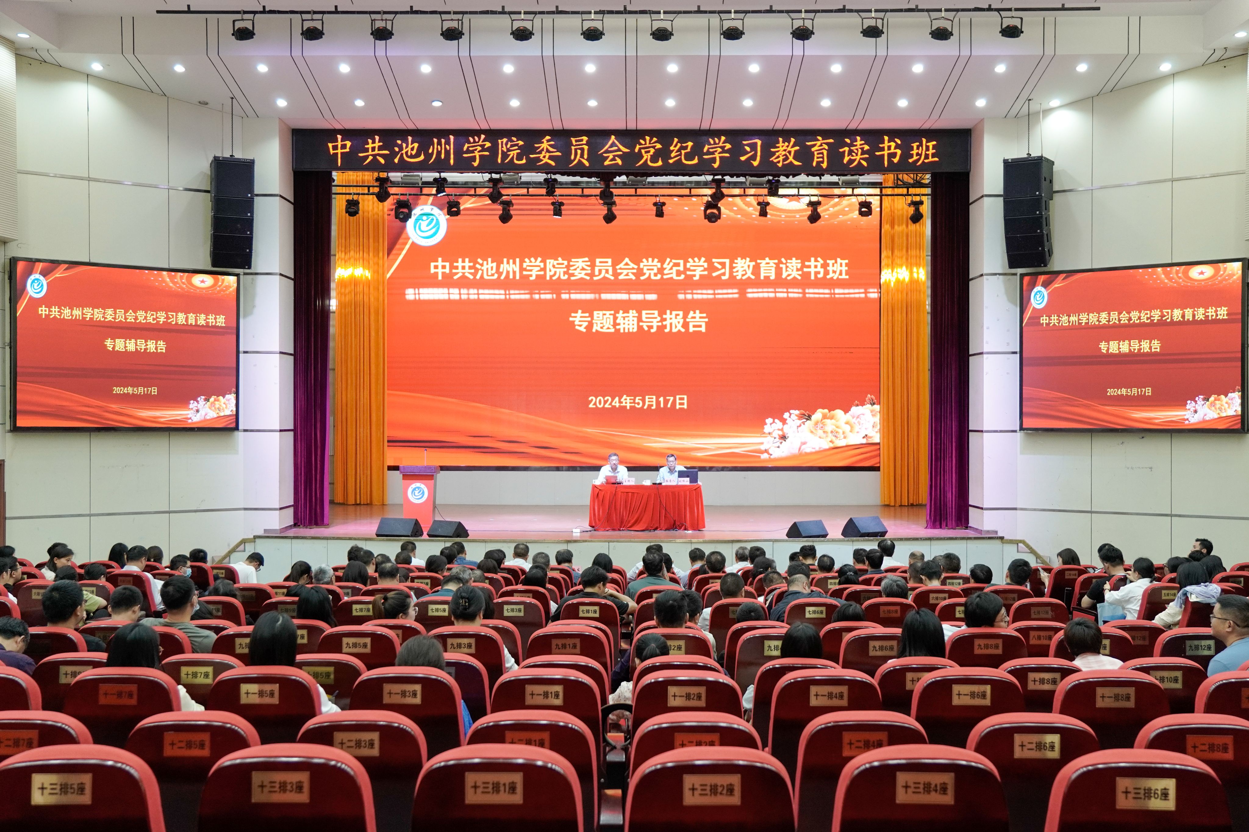 5月15日至17日,学校举办党纪学习教育读书班暨理论学习中心组(扩大)学习会,深入学习贯彻习近平总书记关于党纪学习教育的重要讲话和重要指示精神,认真落实中央有关决策部署和省委工作要求,认真学习新修订的《中国共产党纪律处分条例》,扎实推进学校党纪学习教育走深走实。
