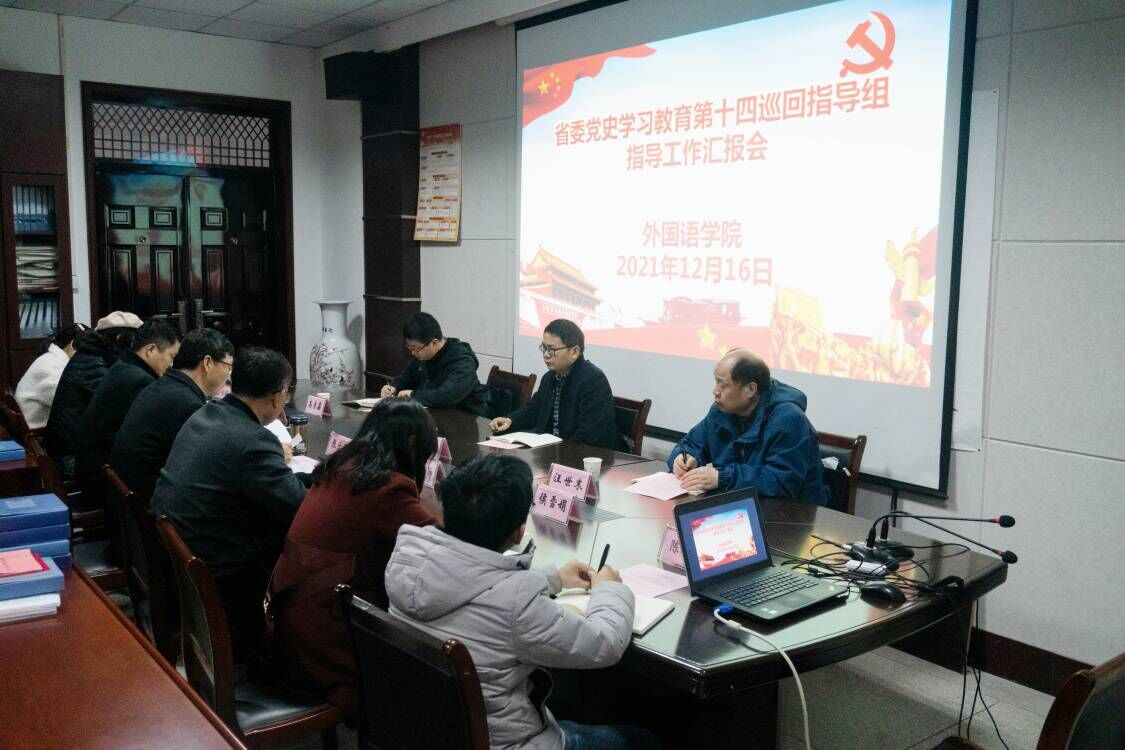 12月16日,省委党史学习教育第十四巡回指导组副组长王国雨一行5人来校调研指导工作,深入了解世界杯官网党史学习教育开展情况。