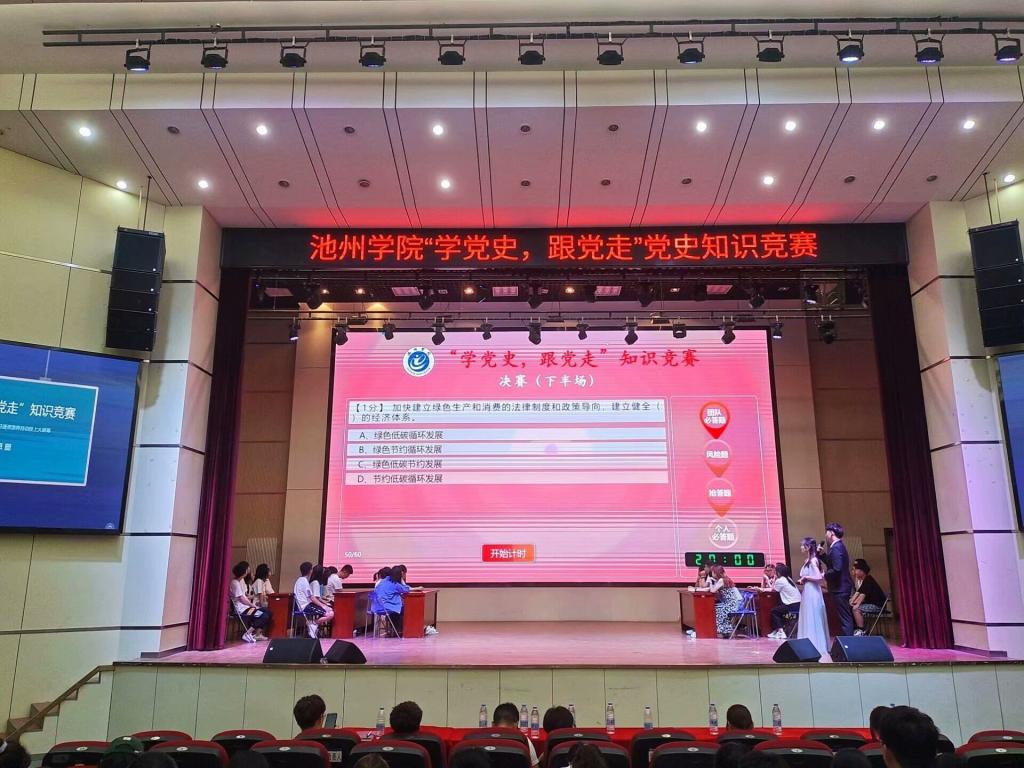 世界杯官网大学生党史知识竞赛自4月初启动以来,各学院广泛动员学生参加,全校共有1500多人报名参加了线上初赛。复赛由晋级的150名选手,以6人一组自由组队参加现场计时团队答题形式展开。经过激烈角逐,12支队伍脱颖而出进入决赛。决赛分为团队必答题、风险题、抢答题。经过激烈的比拼,最终由艺术与教育学院周培玲等同学代表队获得第一名。