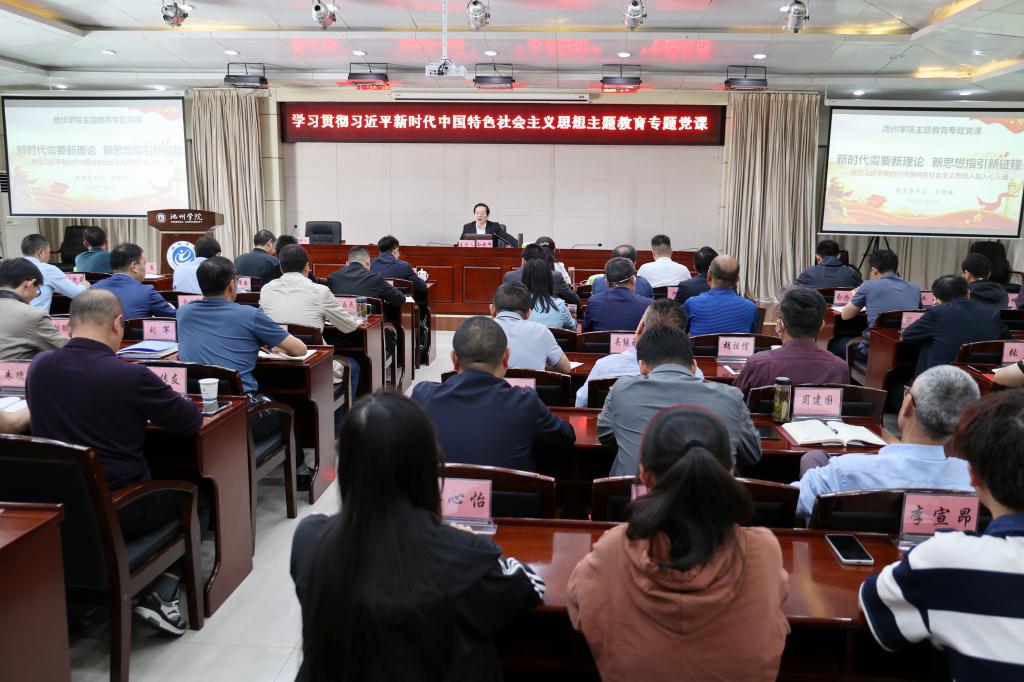 为进一步深化学习贯彻习近平新时代中国特色社会主义思想主题教育的理论学习,根据学校主题教育工作方案要求,5月25日,院党委书记孙晓峰以《新时代需要新理论 新思想指引新征程——推动习近平新时代中国特色社会主义思想入脑入心入魂》为题讲授专题党课。省委第十二巡回指导组成员赵长河、夏明阳到会指导,院领导,全体处级干部,教职工党员代表,学生党员代表和入党积极分子代表参加了党课,专题党课由党委副书记崔国发主持。