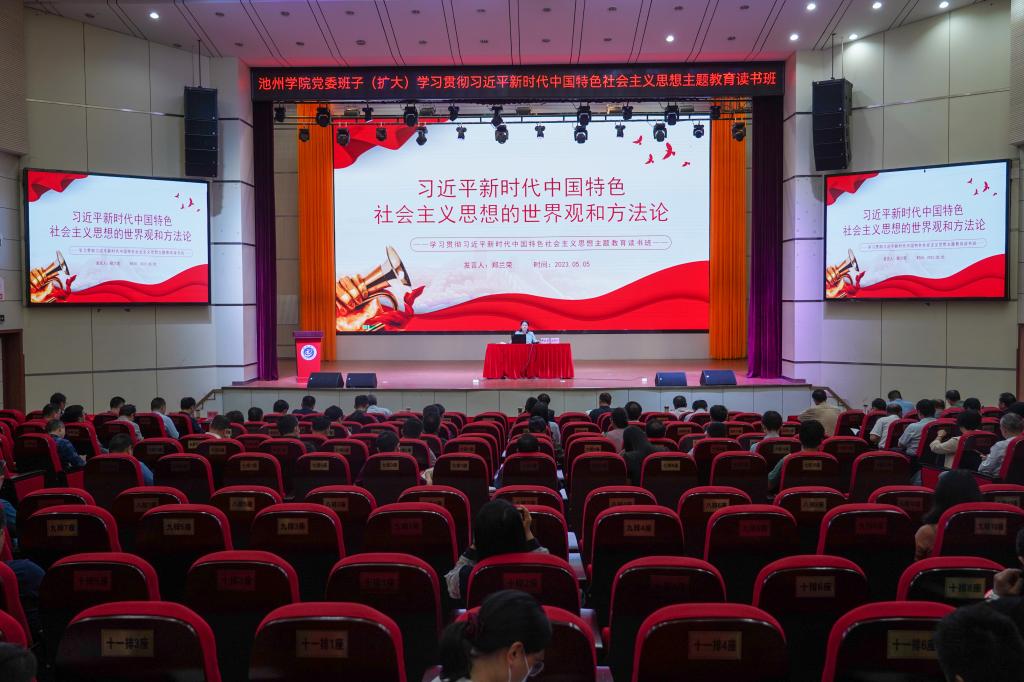 党委副书记、院长郑兰荣在博古楼报告厅领学了《习近平新时代中国特色社会主义思想专题摘编》,并作了题为《习近平新时代中国特色社会主义思想的世界观和方法论》的交流发言。