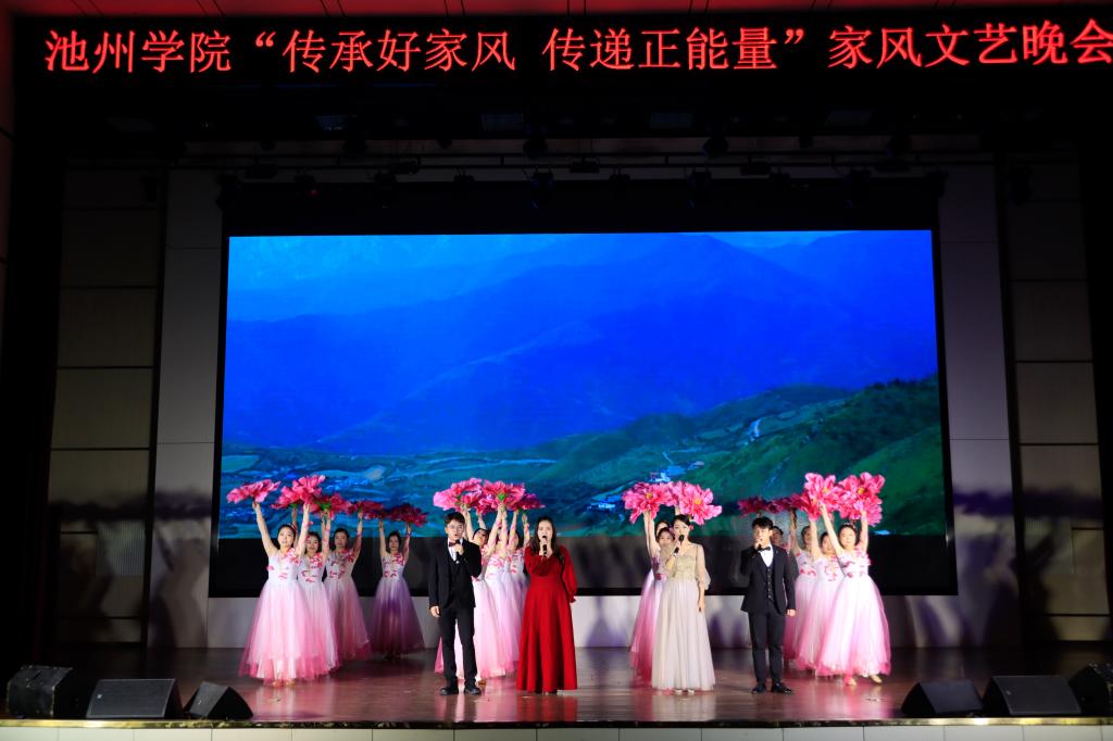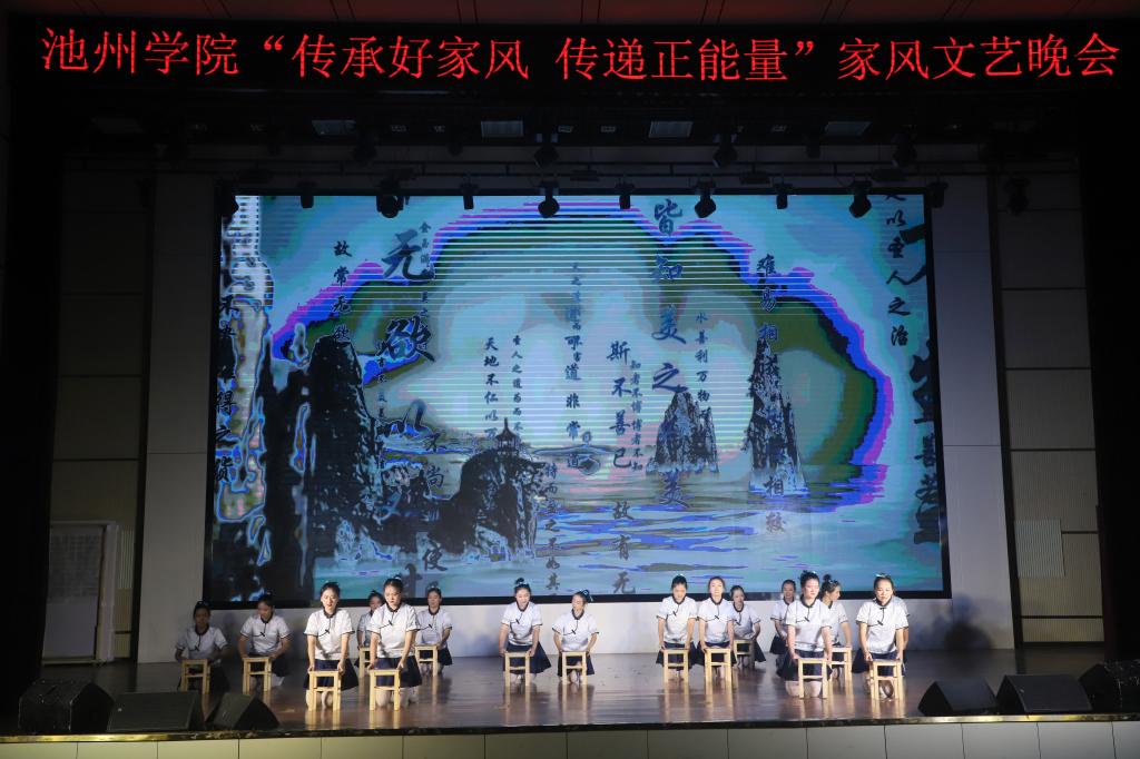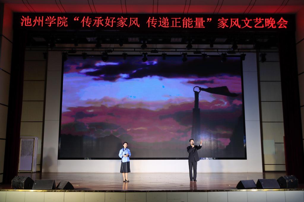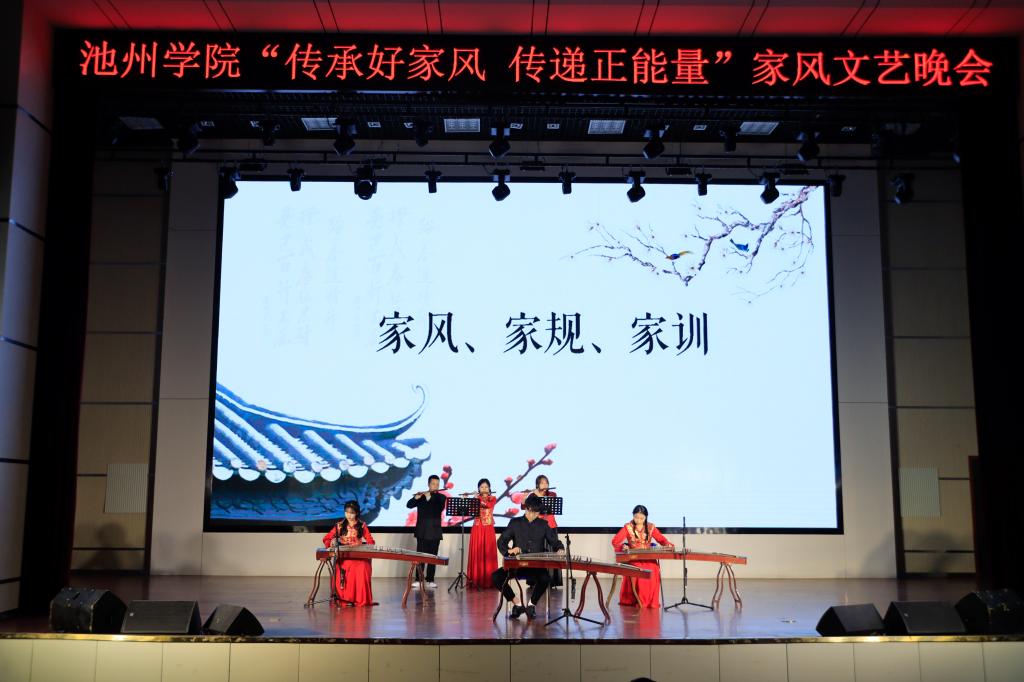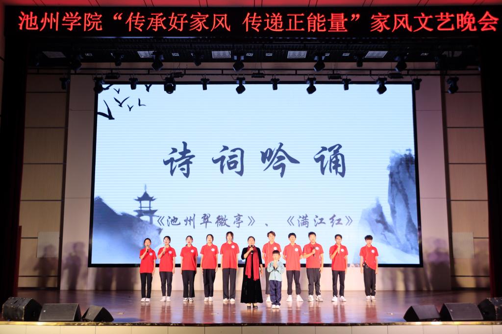 传承百年家风,培育时代新人。校广播台带来的情景剧《池州家风故事》带领观众一起走进历史,学习池州优秀的家风文化,感悟优秀传统文化的魅力。歌曲《父亲》让观众深切体会孝道之美;器乐合奏《我和我的祖国》,诗词朗诵《满江红》、《翠微亭》带领观众领略了祖国的山川江河,饱含对祖国无限祝福;旗袍舞《花好月圆》展示了伟大女性对家庭和生活的热爱。