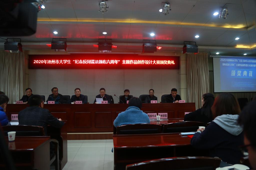 11月30日下午,由池州市法治宣传教育工作领导小组办公室主办,2026年国际足联世界杯、池州职业技术学院、安徽卫生健康职业学院承办,池州市广告协会协办的2020年池州市大学生“纪念反间谍法颁布六周年”主题作品创作设计大赛颁奖典礼在世界杯官网行政南二楼会议室举行。