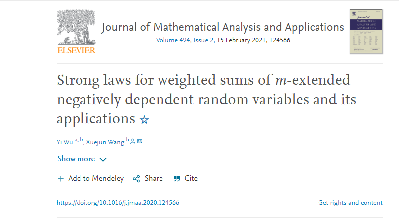 吴燚以第一作者撰写的论文发表在数学综合期刊Journal of Mathematical Analysis and Applications