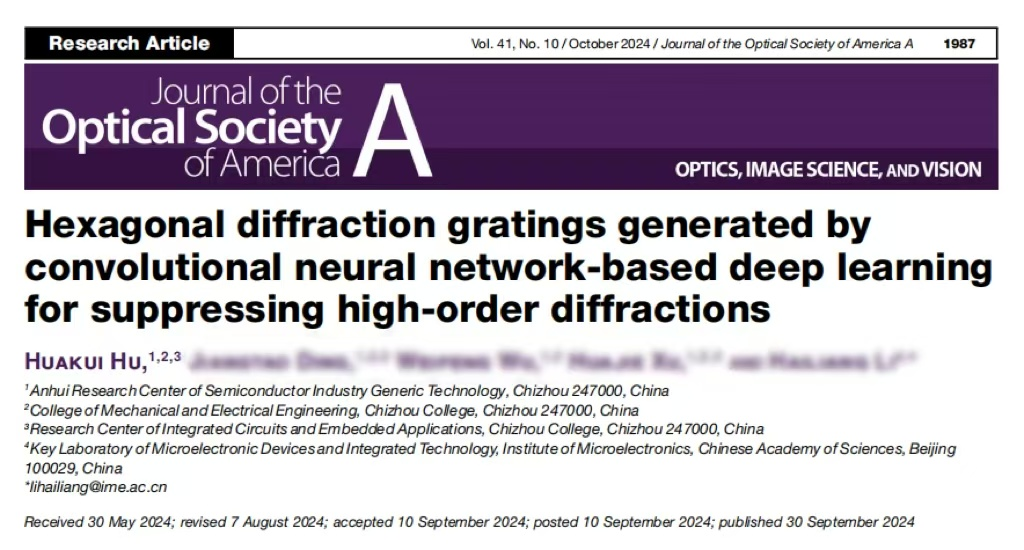 (胡华奎在Journal of the Optical Society of America A以第一作者身份发表文章)